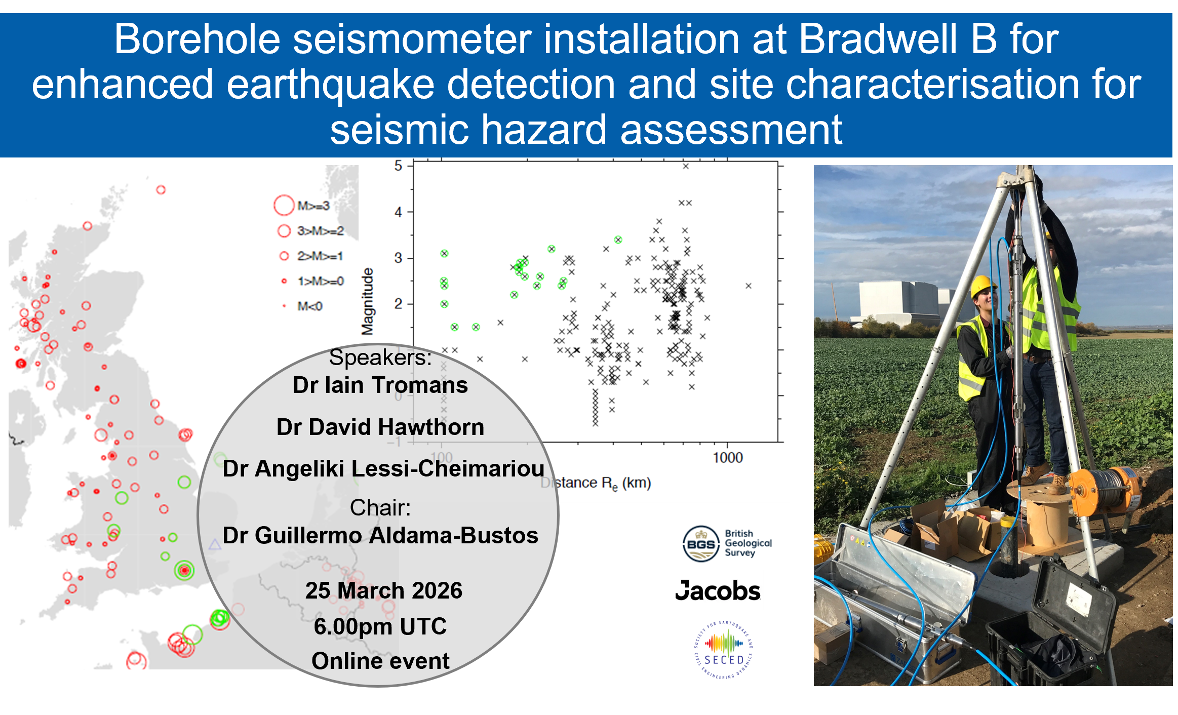 In the first part of the talk, Iain Tromans (Jacobs) sets out the benefits of on-site earthquake monitoring for nuclear facilities, with reference to regulatory guidelines from IAEA and ONR, focusing on the reduction of uncertainties in the inputs to PSHA.
